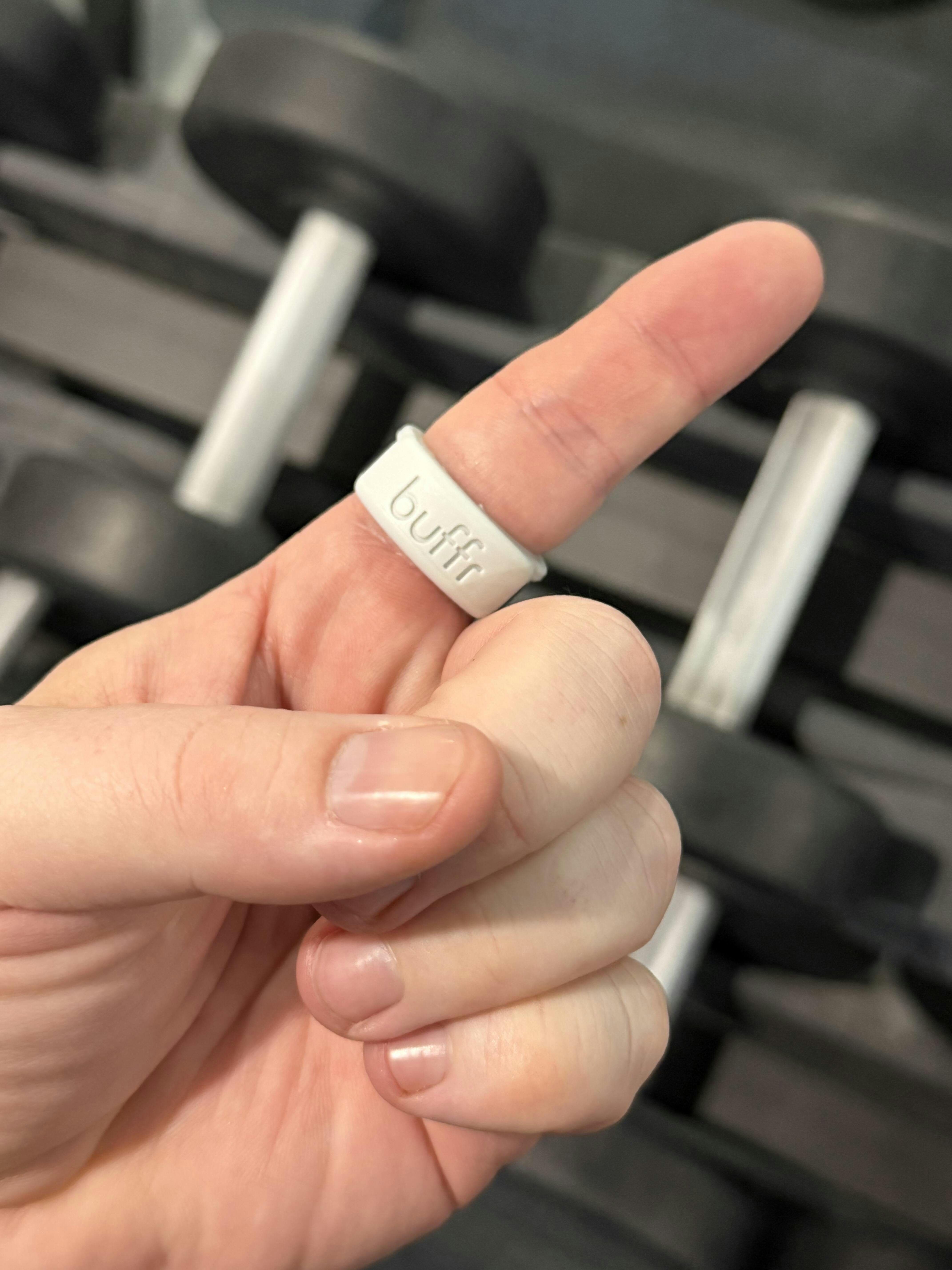 Buffr slips onto your ring in seconds, offering quick, hassle-free protection during workouts, chores, or daily activities.